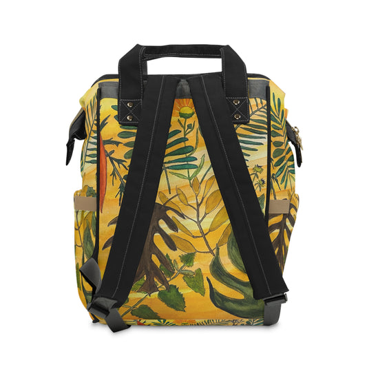 Tropical Floral Diaper Backpack — Yellow Jungle Baby Changing Bag