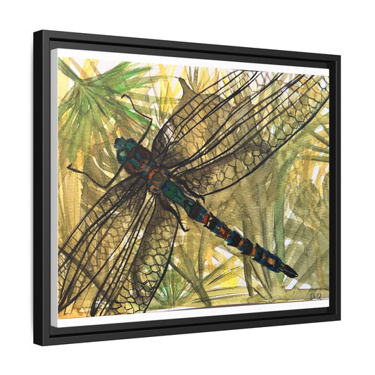 Dragonfly Framed Canvas Art — Botanical Watercolor Wall Decor