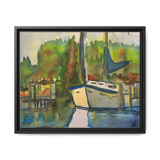 Sailboat Harbor Watercolor — Framed Matte Canvas Wall Art
