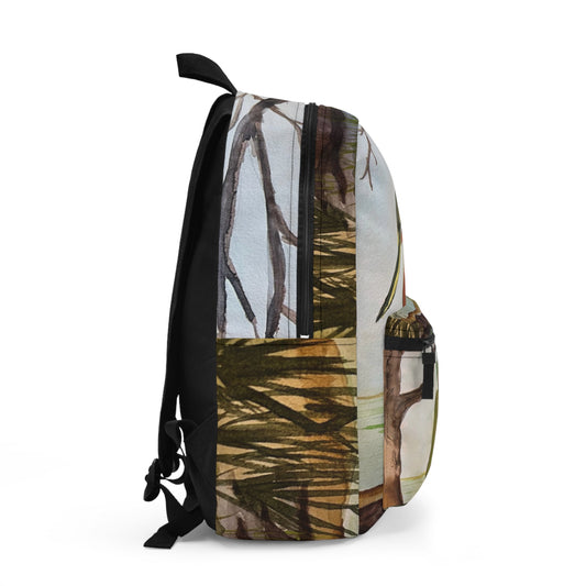 Green Heron Watercolor Backpack — Vintage Bird Art School & Travel Bag