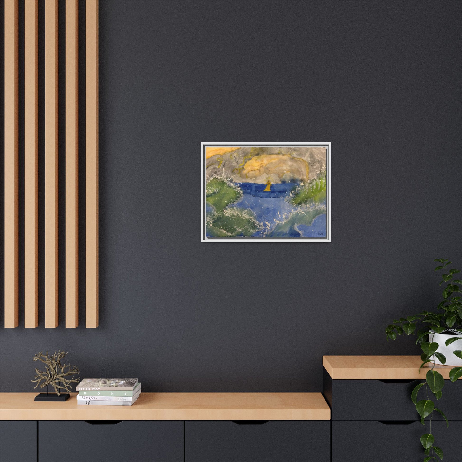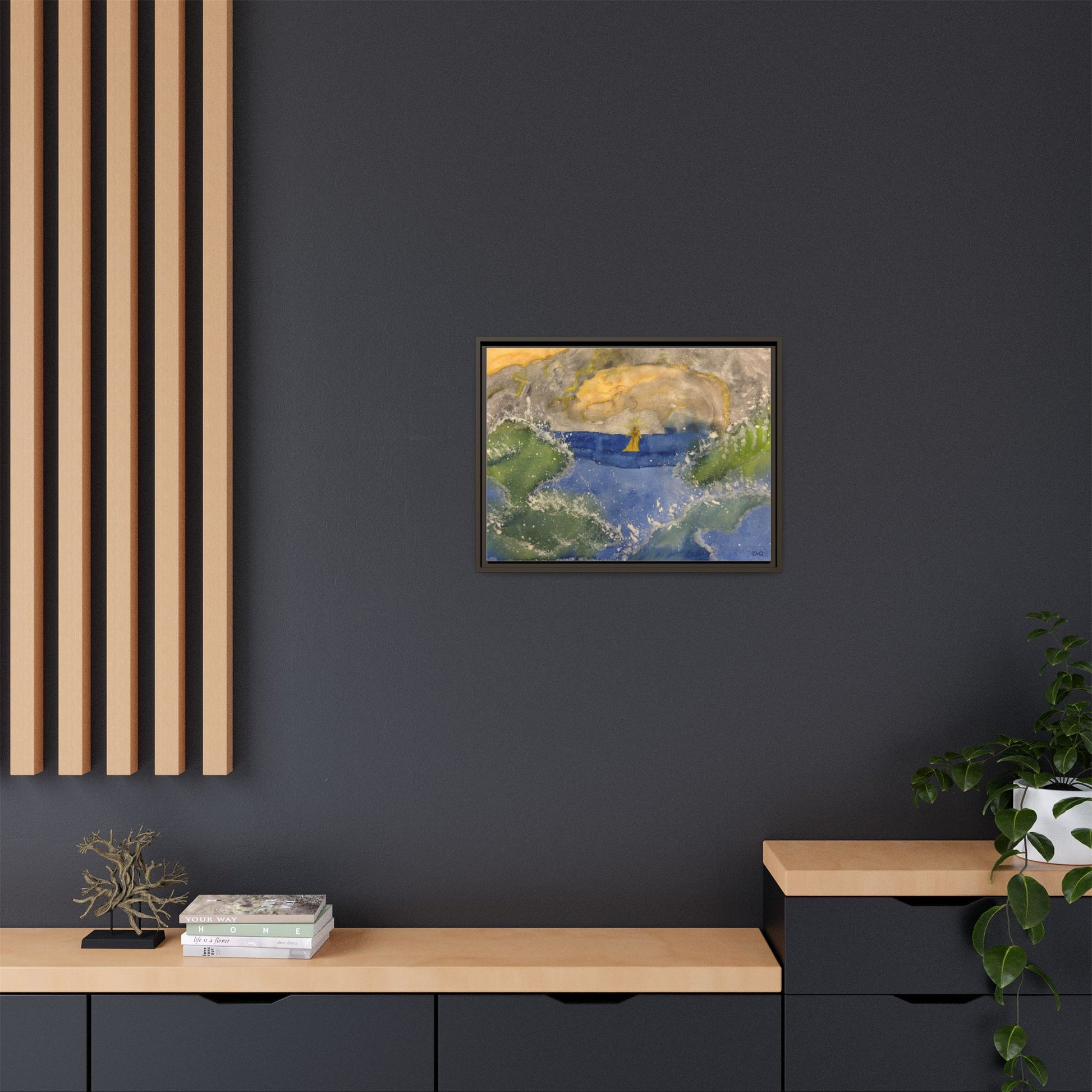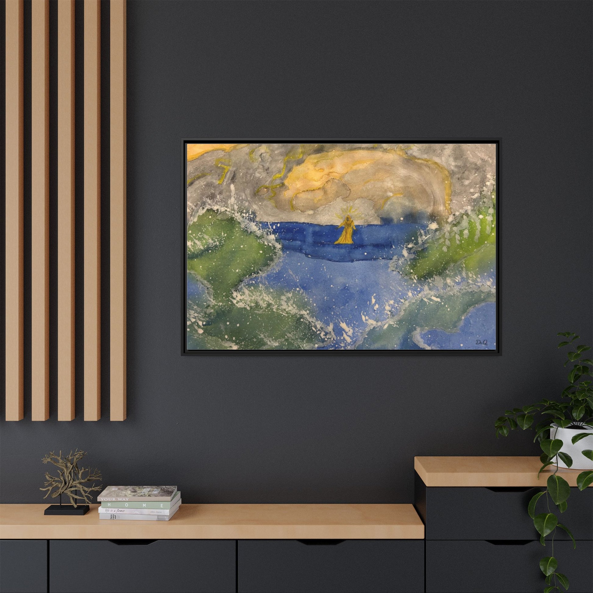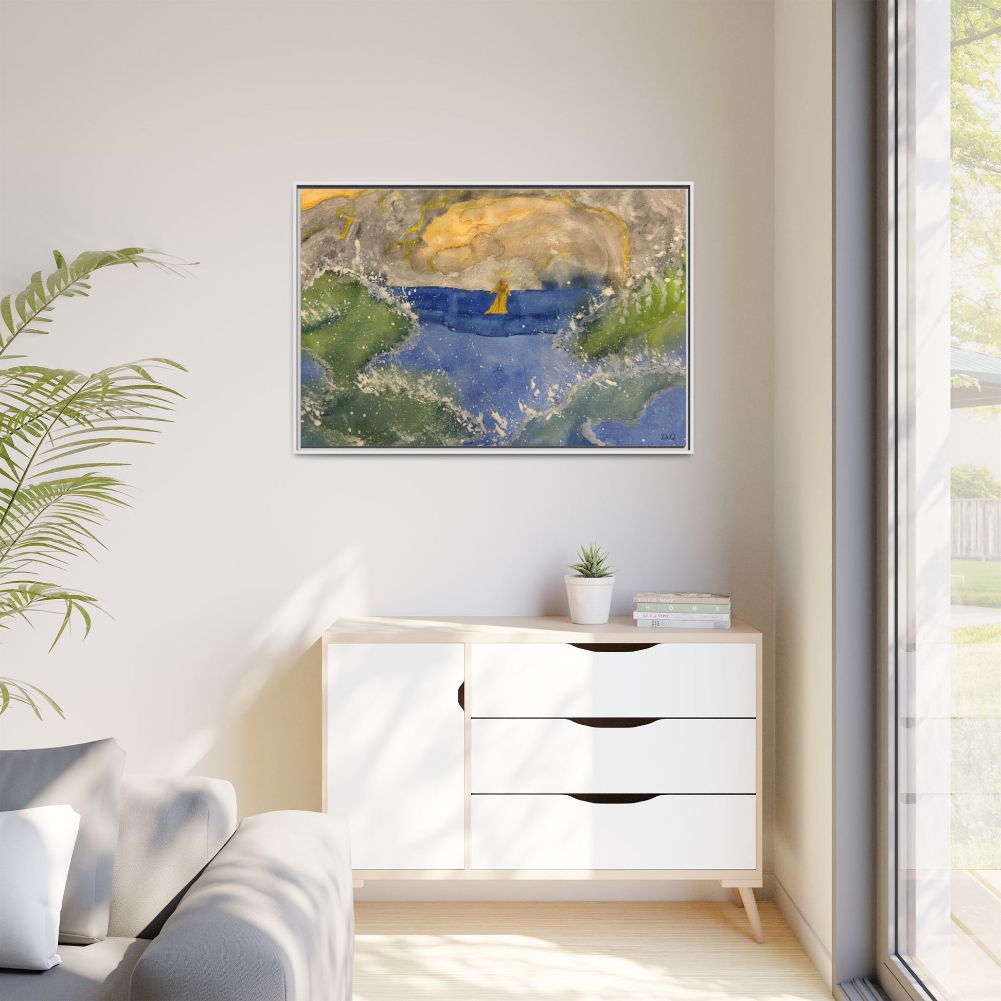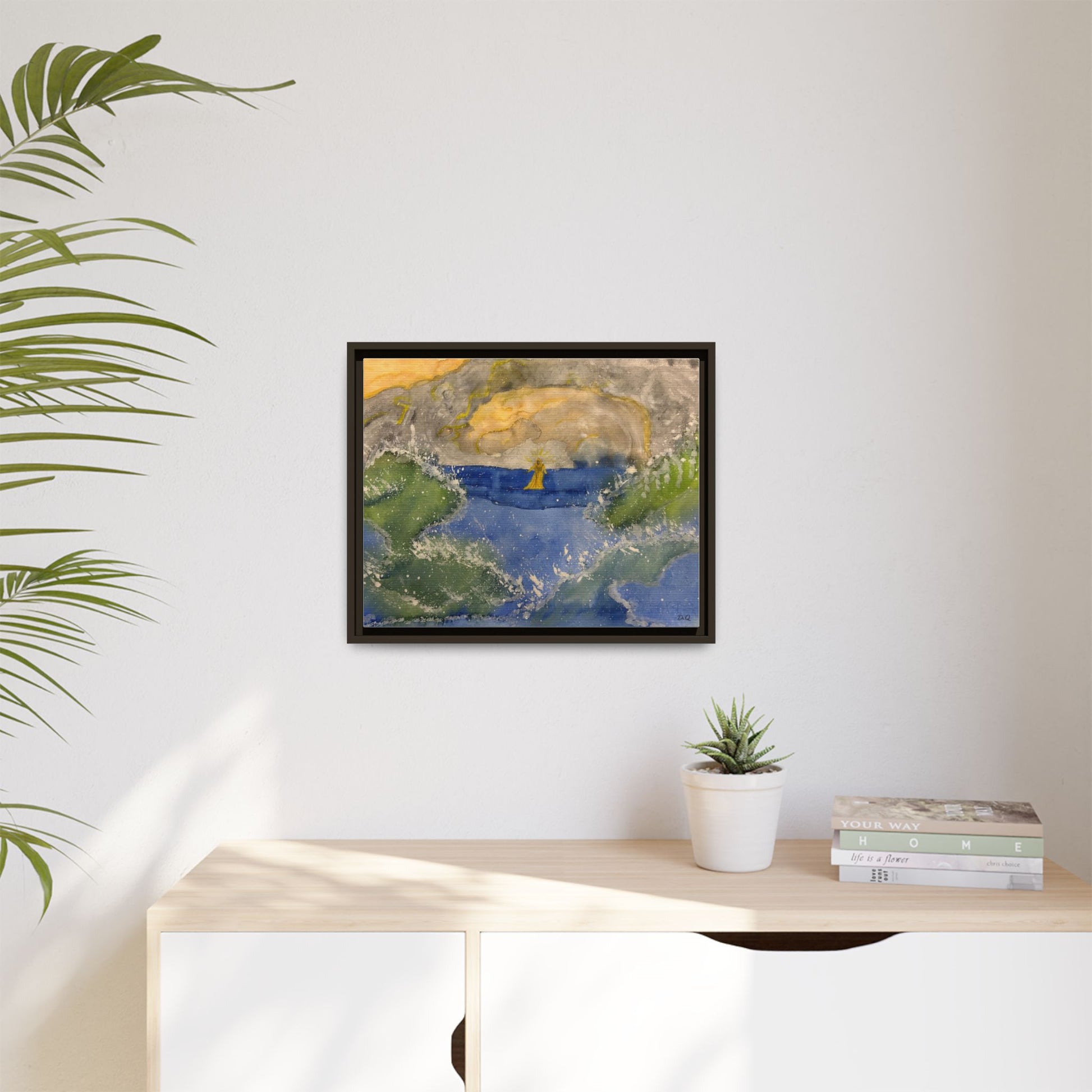 Bring a quiet, sea-side reverie into your room with this "Faith in the Storm" matte canvas print. Soft washes of blue and green ripple like watercolor waves, while a distant yellow lighthouse glows under storm-tinted clouds. The framed edge gives the artwork a clean, gallery-ready presence — an intimate window to a small, contemplative scene that invites slower mornings, lingering evenings, and thoughtful pauses between busy days. Hang it where you drink your coffee, read by lamplight, or want a reminder of calm horizons.