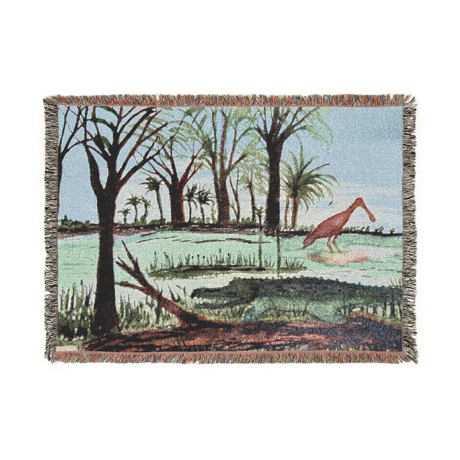 Roseate Spoonbill & Texas Gator Woven Blanket — Coastal Wildlife Throw