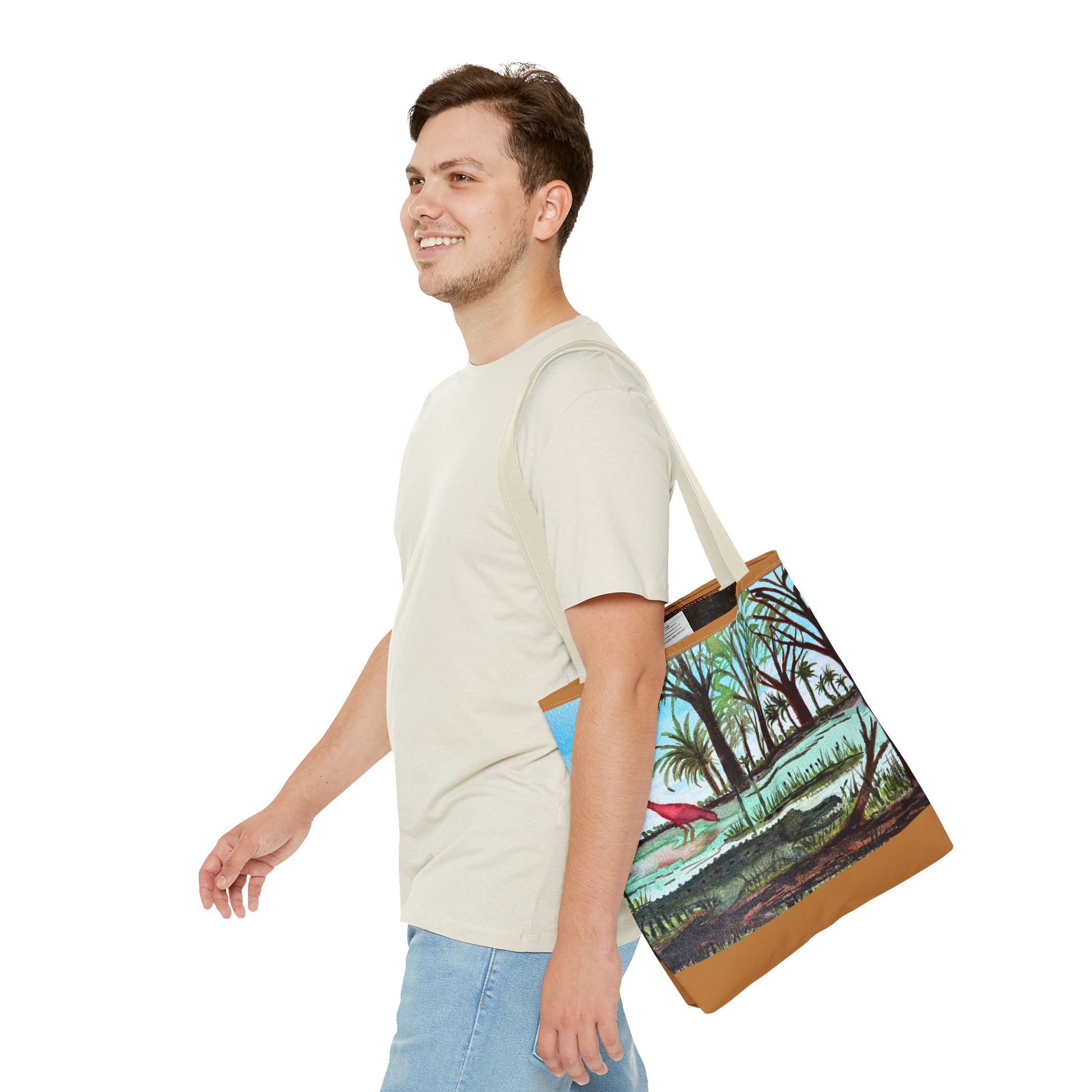 Texas Gator & Roseate Spoonbill Tote Bag — Bold All-Over Print